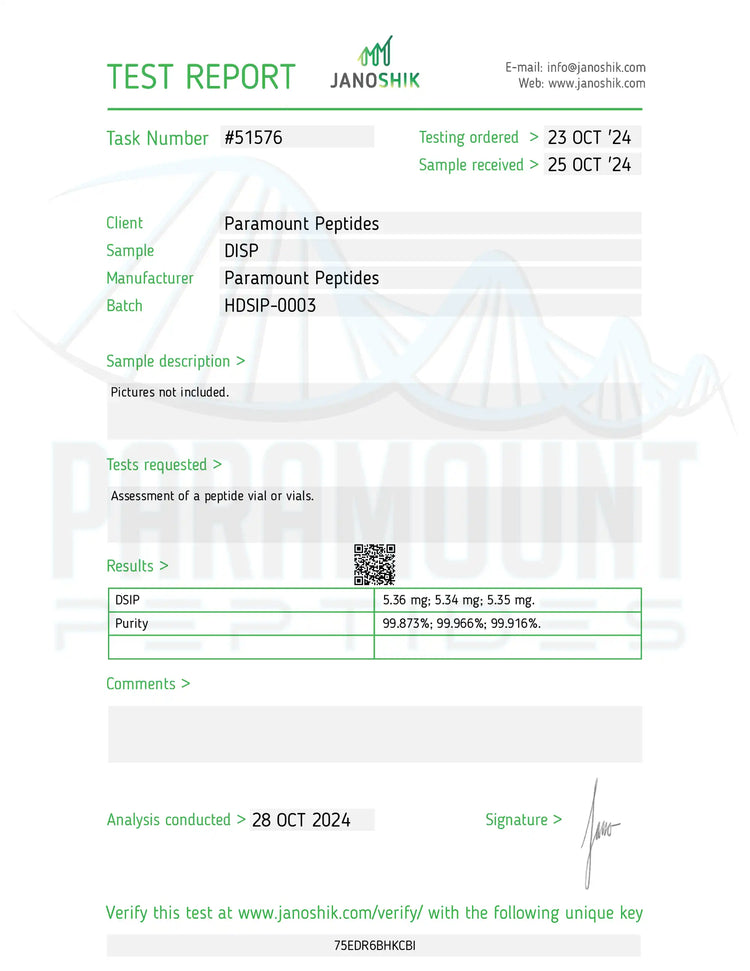 • Designed for those seeking better sleep, stress relief, and enhanced recovery, DSIP (10mg) offers a natural, peptide-based approach to supporting the sleep-wake cycle and improving well-being.