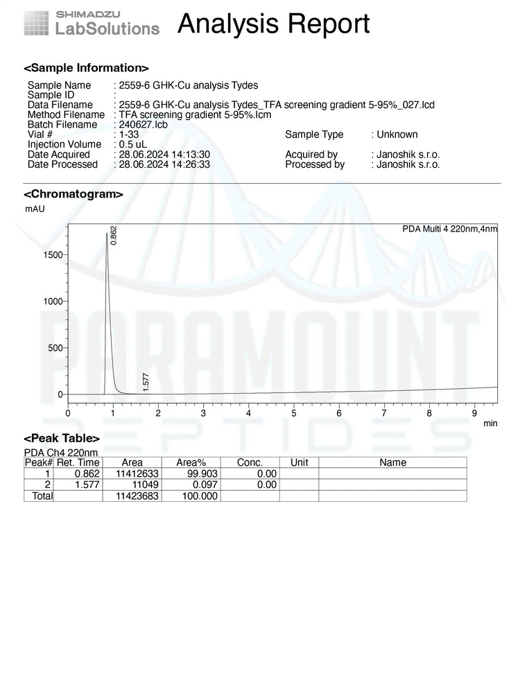 • Perfect for those aiming to rejuvenate skin, promote healing, and harness the benefits of advanced anti-aging support, GHK-Cu (100mg) is a versatile peptide for both cosmetic and therapeutic research.