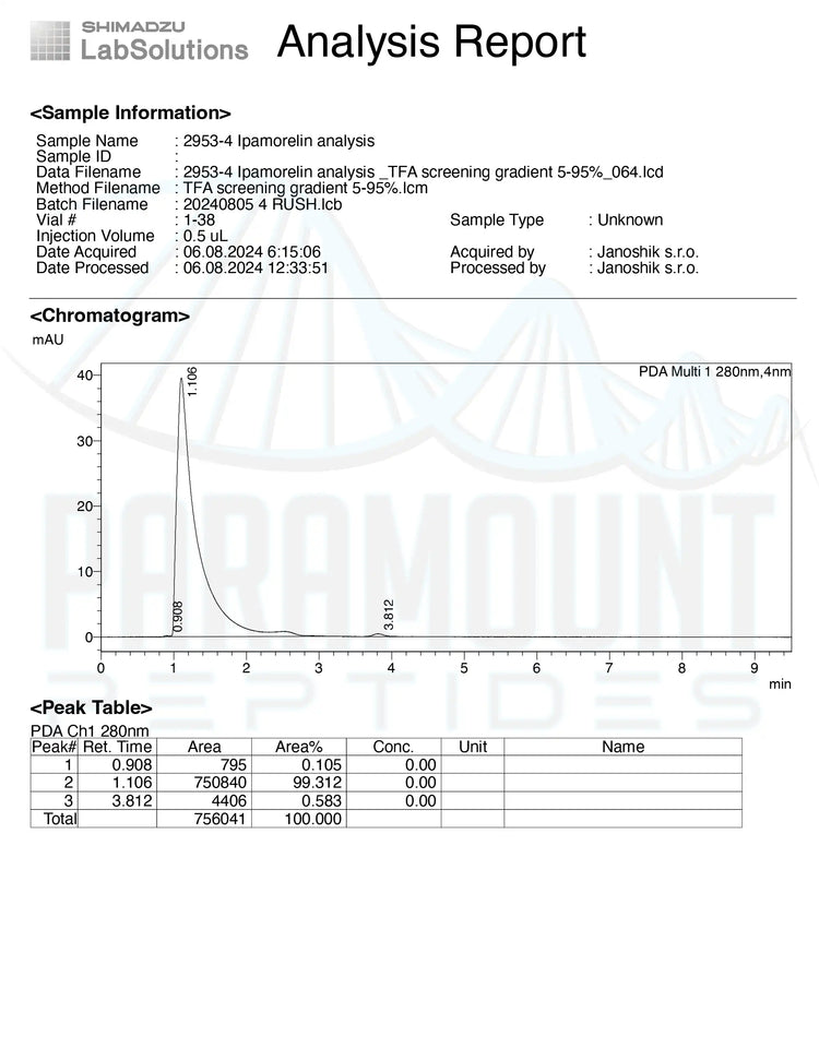 • Unlike many other GHRPs, Ipamorelin triggers GH release without significantly increasing cortisol or prolactin, making it one of the cleanest and most well-tolerated options for long-term use.
