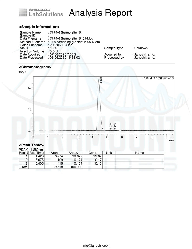 • Ideal for individuals seeking a natural approach to hormone optimization, anti-aging support, and physical performance, Sermorelin (10mg) offers a safe and effective strategy for long-term health and rejuvenation.