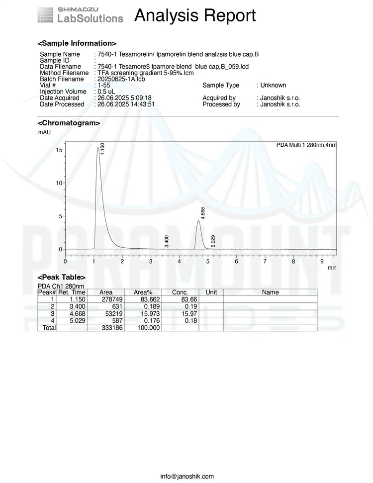 *Issued under Paramount Peptides, the authorized testing and distribution partner.