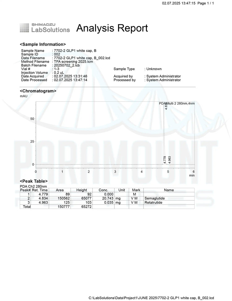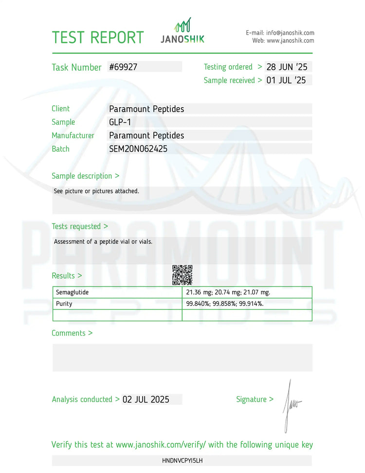*Issued under Paramount Peptides, the authorized testing and distribution partner.