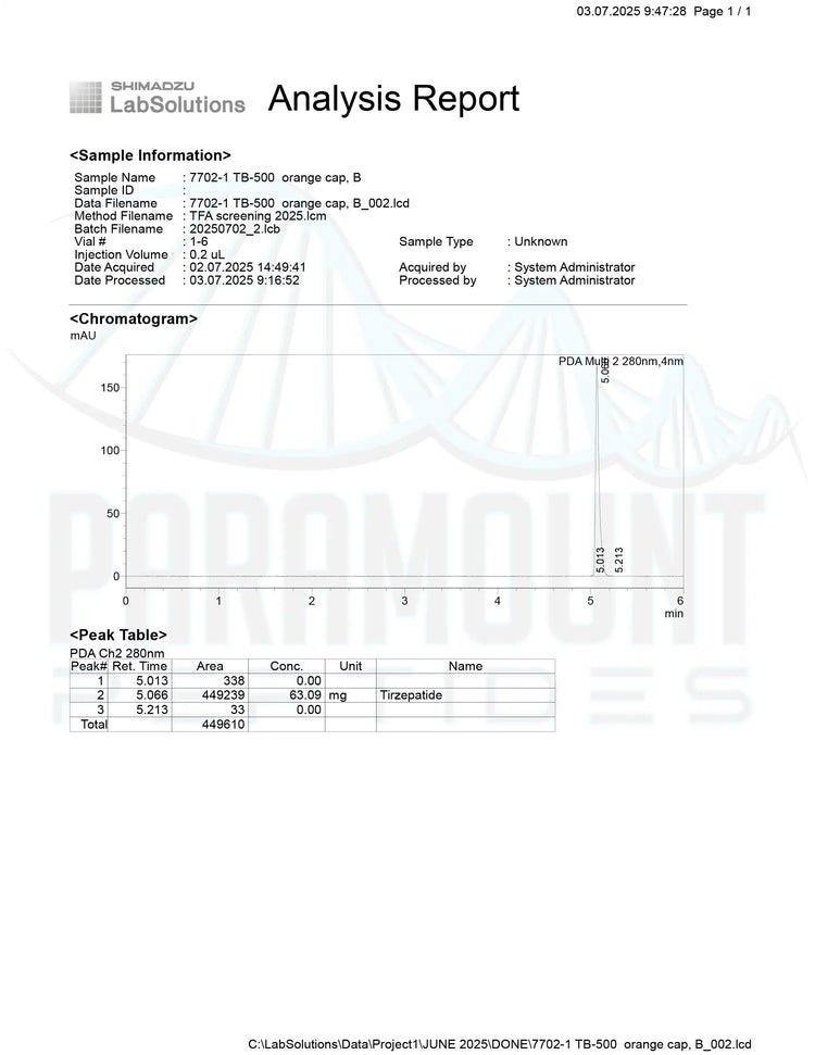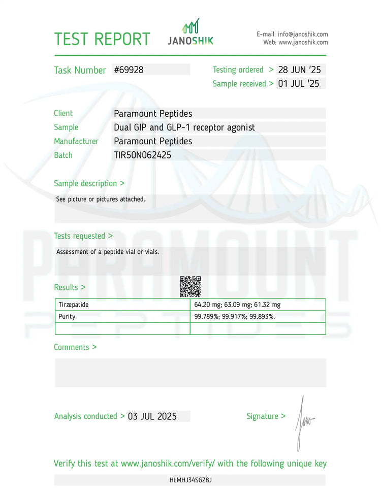 *Issued under Paramount Peptides, the authorized testing and distribution partner.