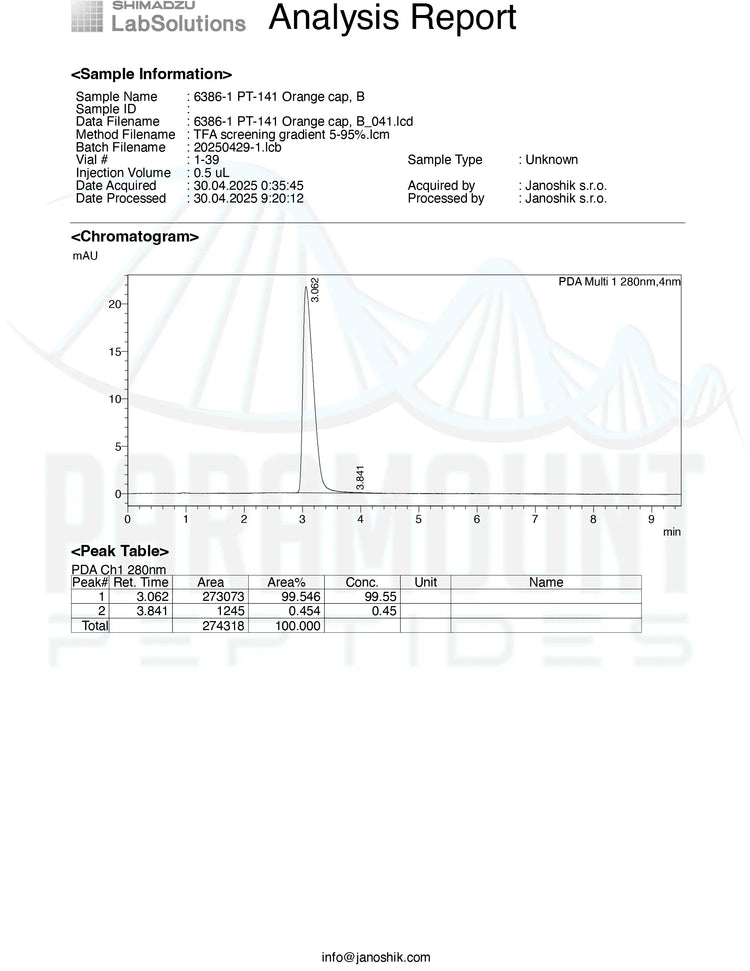 *Issued under Paramount Peptides, the authorized testing and distribution partner.