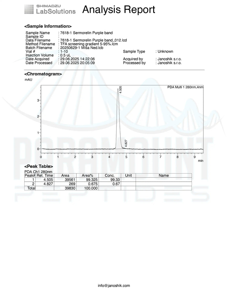*Issued under Paramount Peptides, the authorized testing and distribution partner.