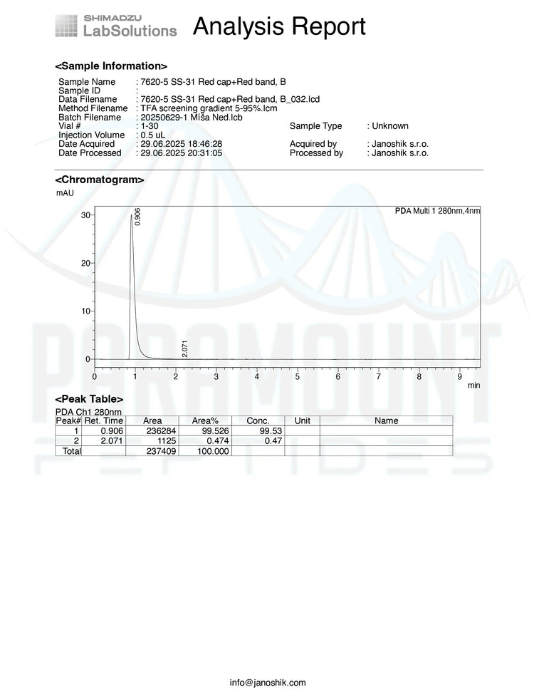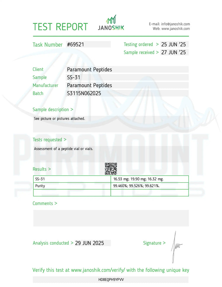 *Issued under Paramount Peptides, the authorized testing and distribution partner.