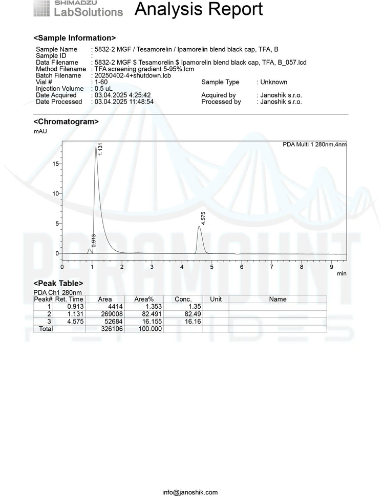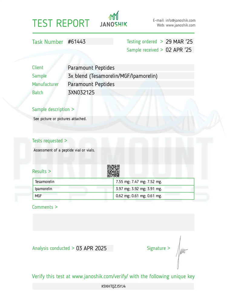 *Issued under Paramount Peptides, the authorized testing and distribution partner.