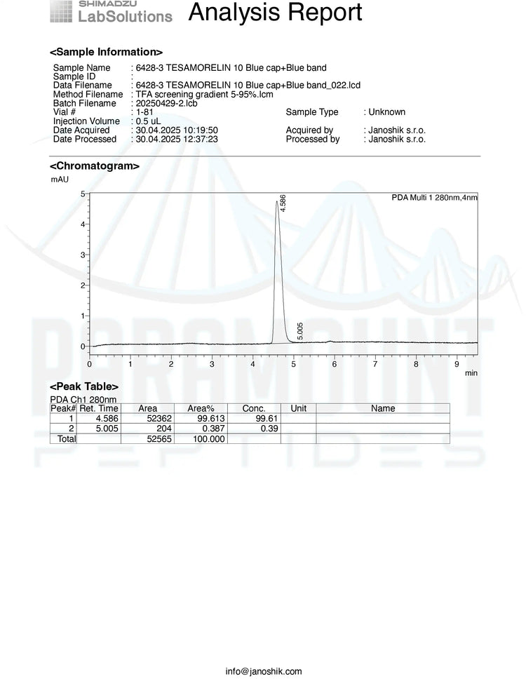 *Issued under Paramount Peptides, the authorized testing and distribution partner.